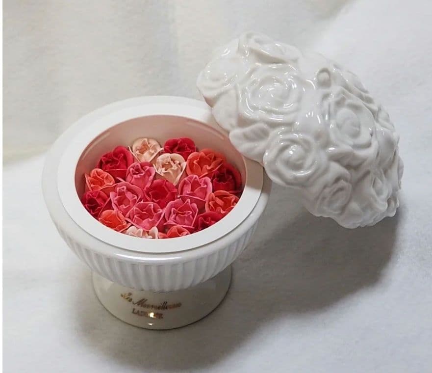 主な素材···本革品物はほぼ新品でで綺麗です。箱とリボンがありますが長年保管していましたので箱の内側にシミがあります。