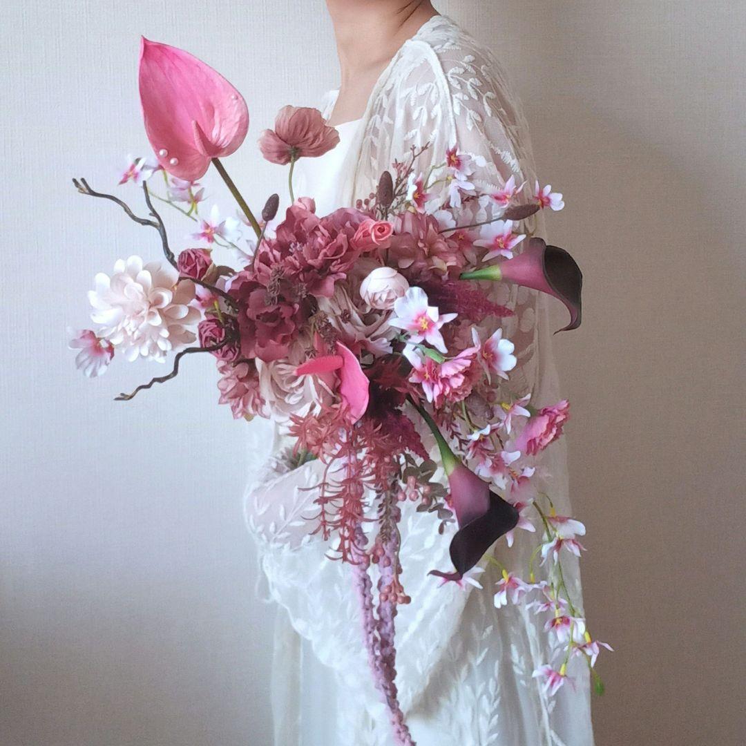 ピンクの造花で作られた華やかな花束、リボン付きでギフトにも最適。- 色: ピンク- 素材: 造花- デザイン: 花束- 装飾: リボン付き- 花の種類: バラとコスモス53本ご覧いただきありがとうございます。